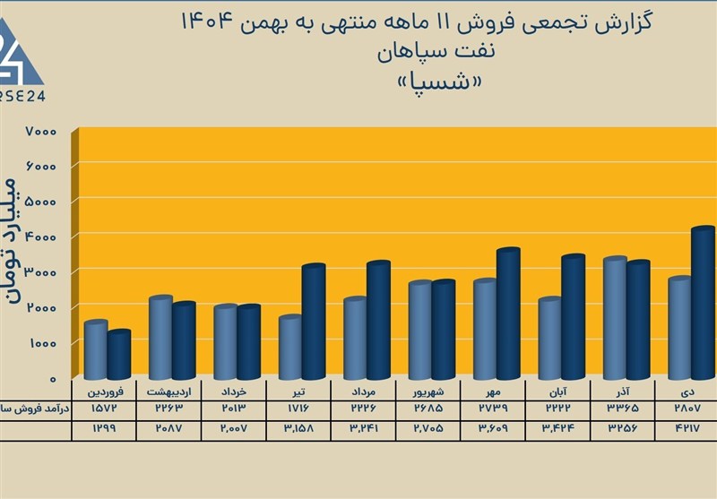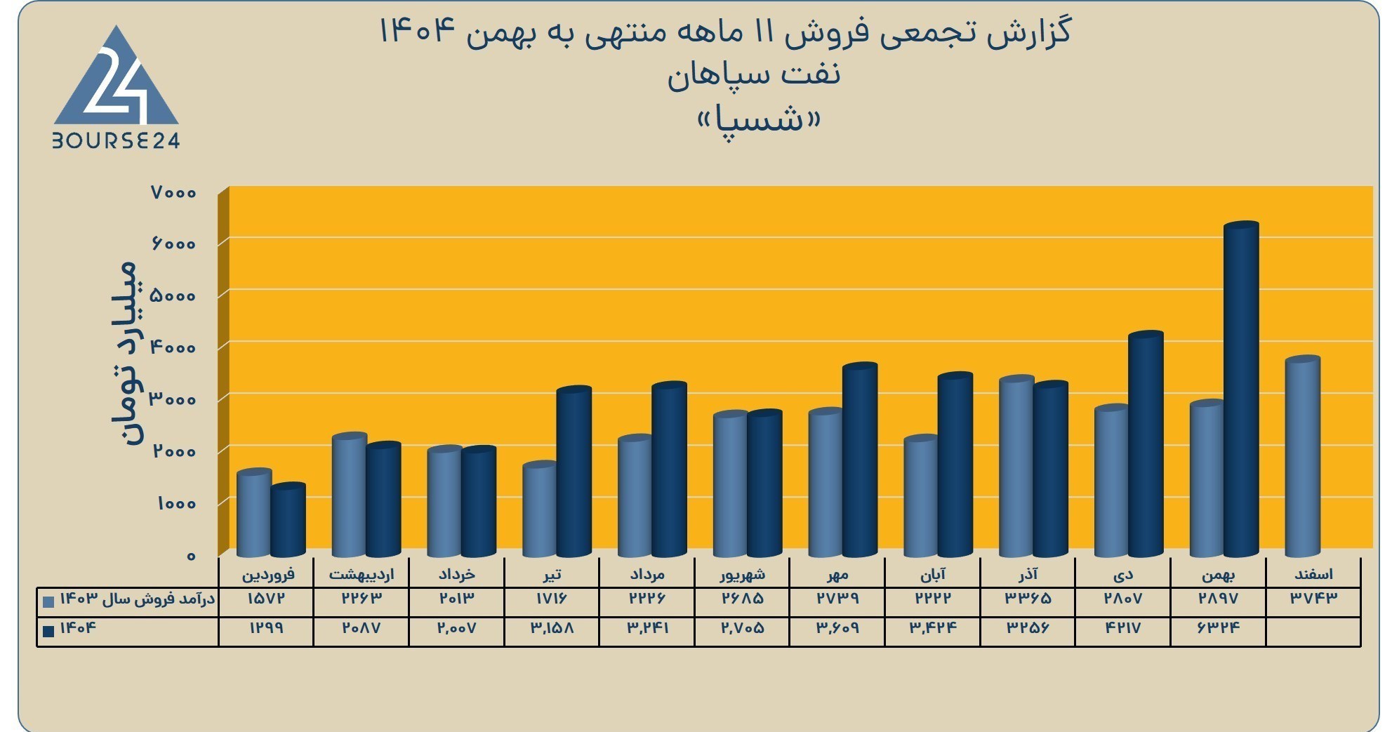 فروش بهمن نسبت به ماه قبل افزایش 50 درصدی داشت و به 6324 میلیارد تومان بالغ گردید.